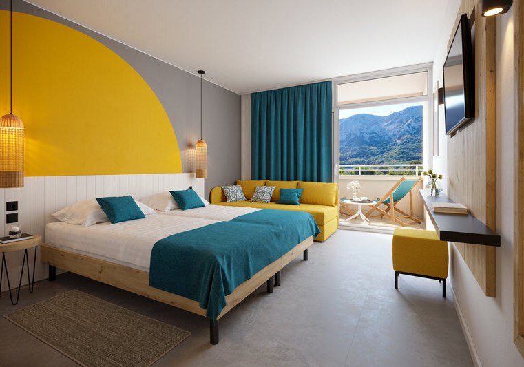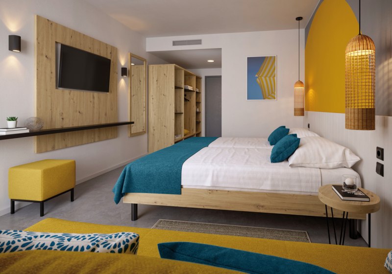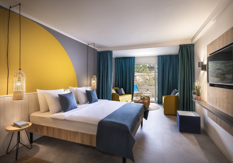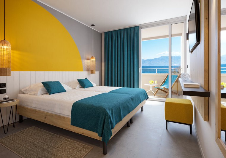 Die Zimmer folgen einer klaren Linie: Klimaanlage, WLAN und Fernseher gehören ebenso dazu wie Safe und Schreibtisch. Viele Unterkünfte verfügen über Balkon oder Terrasse, teils mit Meerblick. Unterschiedliche Bettentypen – vom Doppel- bis zum Queensize-Bett, ergänzt durch Schlafsofa oder Zustellbett – schaffen flexible Plätze für Paare und Familien.