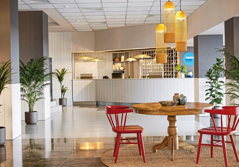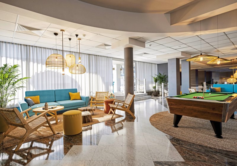 Draußen erwartet Euch ein Süßwasser-Außenpool mit separatem Kinderbecken und eine große Sonnenterrasse; drinnen sorgen Loungeflächen und ein funktionales Foyer für ruhige Momente. Familien schätzen Spielplatz und Miniclub, Aktive den Fitnessraum und Tischtennis. Wer Struktur liebt, findet sie im klaren Serviceablauf von Rezeption, Restaurant und Poolbar. Ihr entscheidet zwischen entspanntem Strandtag, leichter Aktivität oder einem Wechsel aus beidem – alles mit kurzen Wegen.