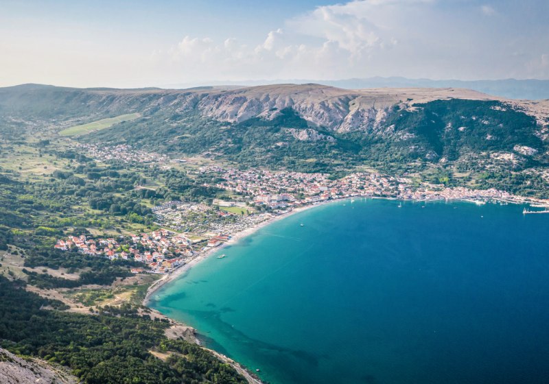 Das Resort liegt in Baška auf der Insel Krk, direkt hinter dem langen Sand‑/Kiesband der Velika Plaza. Etwa 100 Meter trennen Euch vom Strand, sodass Ihr Handtuch und Sonnencreme nicht lange tragen müsst. Das Zentrum von Baška erreicht Ihr nach rund 500 Metern – ideal für einen Spaziergang entlang der Promenade. Ein Supermarkt liegt in etwa einem Kilometer Entfernung, ebenso die Bushaltestelle. Der Flughafen Rijeka (RJK) ist rund 45 Kilometer entfernt und bindet Euch an das Festland an. Durch die Lage vereint Ihr Strandtage mit kurzen Wegen zu Cafés, Läden und dem täglichen Bedarf. Der Platz selbst fühlt sich aufgeräumt an: klare Wege, definierte Zonen, dazu die Nähe zum Wasser, die Euren Tagesrhythmus bestimmt. Highlight: Nur 100 Meter bis zum Velika‑Plaza‑Strand – schnell am Wasser, schnell zurück.