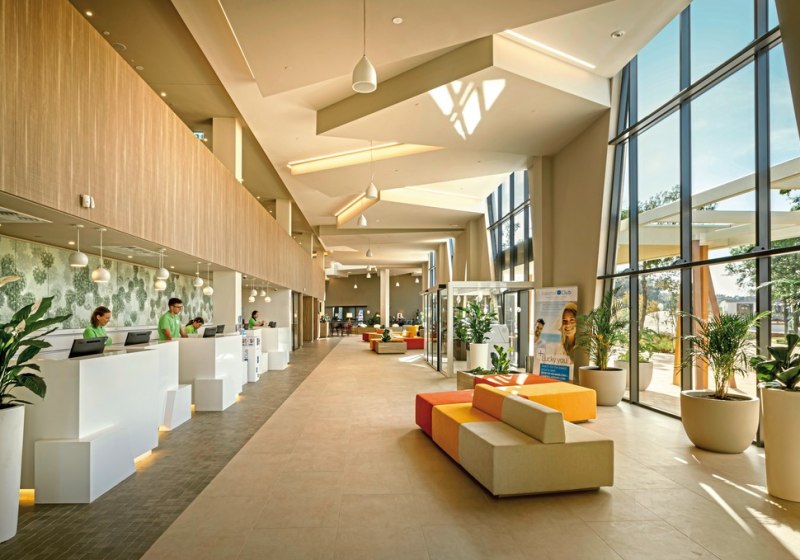 Badetücher, Liegestühle und Sonnenschirme strukturieren Eure Pool- und Strandtage, während Gartenflächen, Terrassen, Bibliothek und Theatersaal ruhige Zonen eröffnen. Für Familien stehen Kinderpool, Spielplatz, Spielzimmer und Wasserpark mit Wasserrutsche bereit. Haustiere sind auf Anfrage erlaubt. Highlight: Sportpark und Wasserpark erweitern das Angebot für aktive Familien.