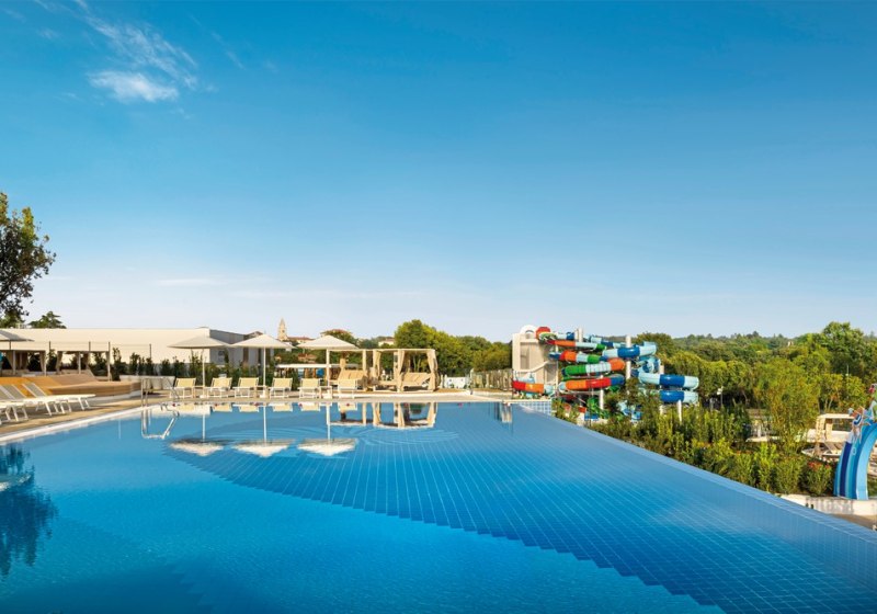 • Liegestühle • Außenpool • Sonnenschirme • Pool • Poolbar • Badetücher • Wasserrutsche • Wasserpark