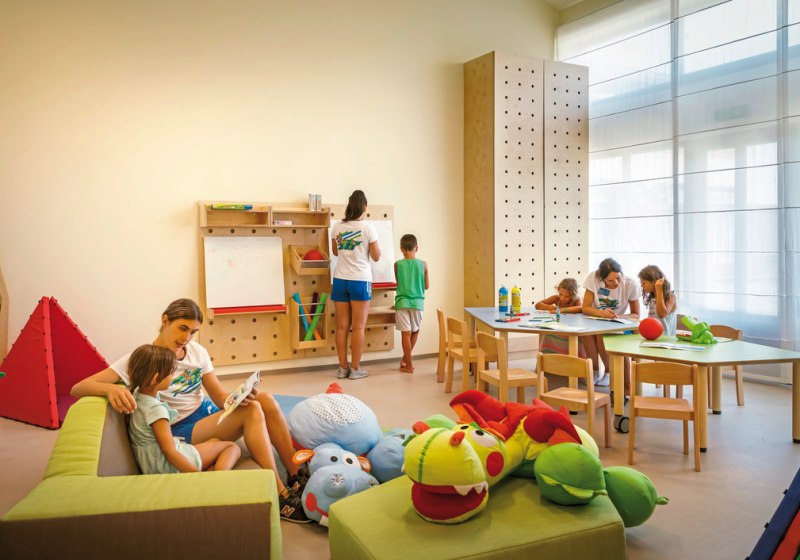 • Spielzonen: Spielplatz und Spielzimmer bieten Platz für sichere Bewegung.