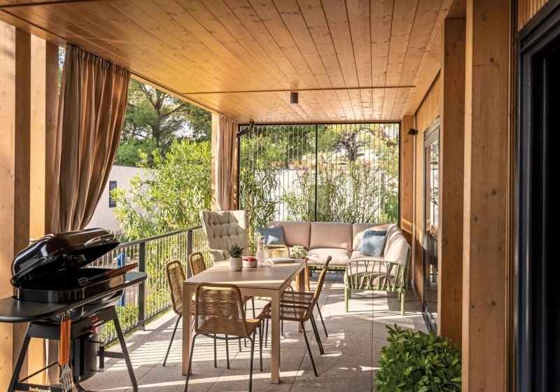 • Draussen Sein: Überdachte, möblierte Terrasse wird zum privaten Lieblingsplatz.