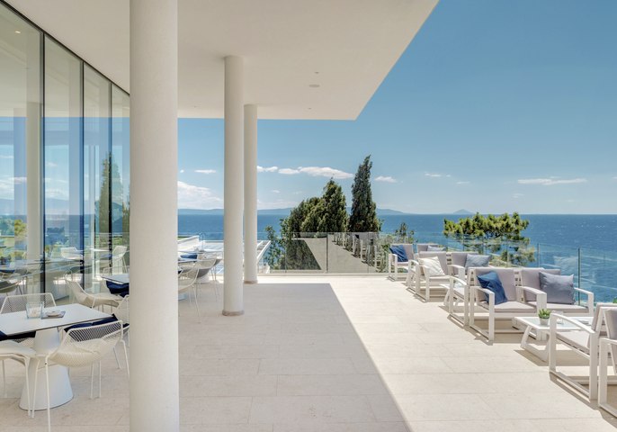 Valamar Collection Girandella Resort - Valamar Girandella - Adults -Only ist ein Adults-Only-Retreat ab 16 Jahren, unmittelbar an den Kieselstränden von Rabac und eingerahmt von Pinienwald. Ihr lebt hier mit klarem Fokus auf Ruhe, stilvollem Ambiente und verlässlichem Komfort. Das Herzstück bildet ein Infinity-Außenpool mit Liegen und Sonnenschirmen, der Euch den Blick Richtung Adria öffnet. Architektur und Wegeführung bleiben übersichtlich, die öffentlichen Bereiche des Girandella Resorts nutzt Ihr zusätzlich mit – ein Plus an Raum, ohne Trubel. Check-in ab 14:00 Uhr, Check-out bis 10:00 Uhr hält den Ablauf planbar.