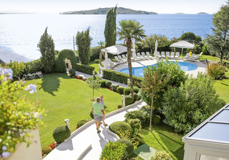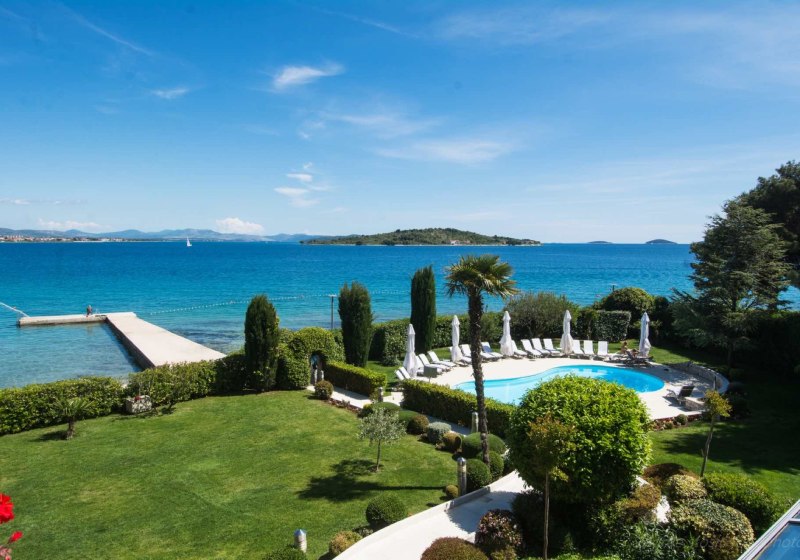 Villa Radin empfängt Euch auf der Halbinsel Punta in Vodice, direkt an der Küste. Das Haus ist klein, überschaubar und damit angenehm persönlich: Nur 13 Zimmer schaffen eine ruhige, konzentrierte Atmosphäre. Ihr schwimmt im Außenpool, entspannt auf der Terrasse im Garten und habt das Zentrum in kurzer Gehweite. So fühlt sich ein Aufenthalt fokussiert und gelassen an.