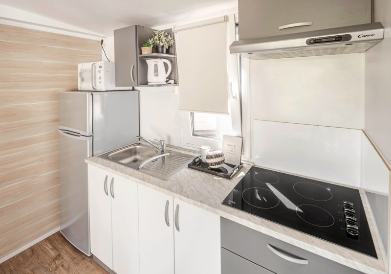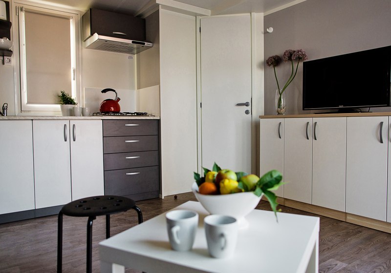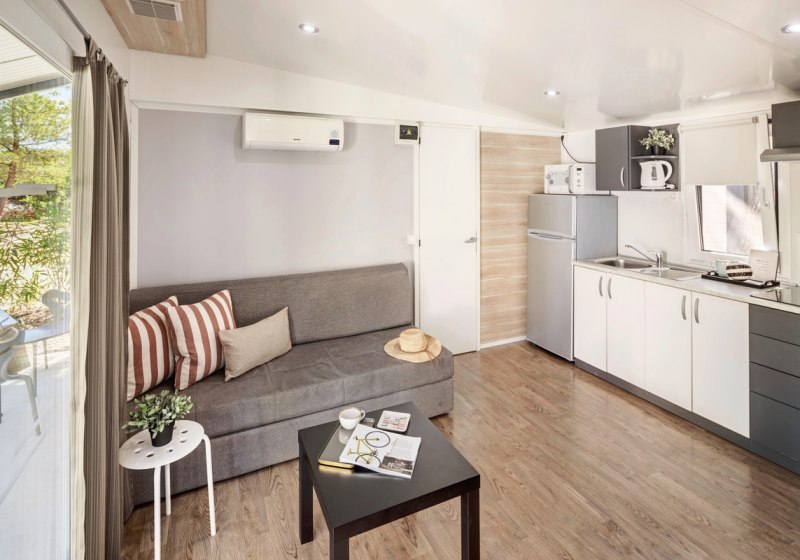Die Bungalows sind auf Alltagstauglichkeit ausgelegt: zwei separate Schlafzimmer und ein eigener Wohnraum schaffen klare Zonen. Zwei Bäder mit Dusche/WC, Föhn sowie Sat‑TV, Wi‑Fi, Klimaanlage und Heizung runden den Komfort ab. Die möblierte Terrasse verlagert viele Momente nach draußen.