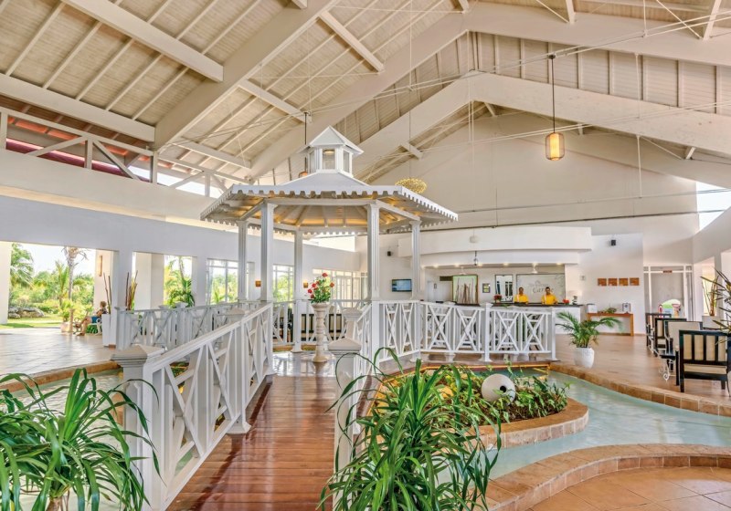 Ihr residiert auf Cayo Coco, direkt am feinsandigen Strand und außerhalb des Ortes. Die Umgebung wirkt weit und maritim, der Blick schweift vom Strand über das türkisfarbene Wasser. Wer anreisen möchte, erreicht das Resort vom Flughafen Cayo Coco nach etwa 17 Kilometern. Die Wege im Resort führen geradlinig von Lobby und Bars zu Pool, Terrasse und Strandzugängen.
