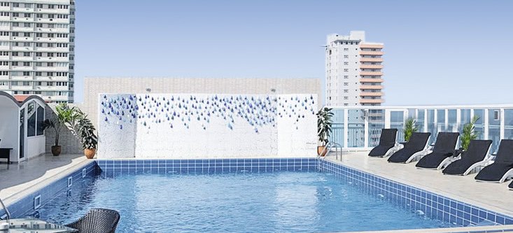 NH Capri La Habana verbindet die Energie Havannas mit urbanem Komfort. Ihr wohnt in einem hohen Haus mit 18 Etagen und 220 Zimmern, organisiert um eine lebendige Lobby und klare Wege. Der Dachpool setzt einen markanten Akzent über den Dächern, die Snackbar Azul im 17. Stock liefert Aussicht mit Biss. WLAN ist kostenfrei, Serviceleistungen wie Wäscheservice und medizinische Betreuung geben Sicherheit im Stadtalltag.