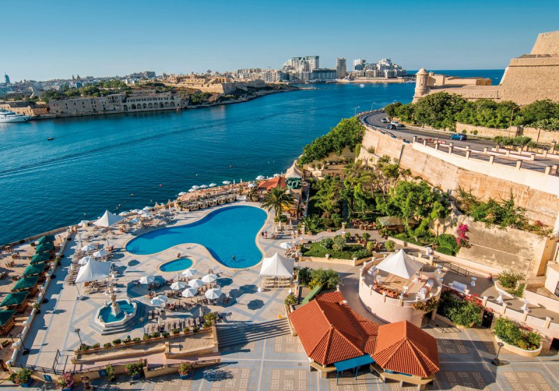 Das Grand Hotel Excelsior bündelt historische Lage in Valletta, Hafenblick, Spa und kleine Strandzone mit städtischer Nähe. Küche und Service erhalten hervorragende Bewertungen, die Infrastruktur bleibt übersichtlich. Ihr entscheidet spontan zwischen Stadterlebnis und Wasser.