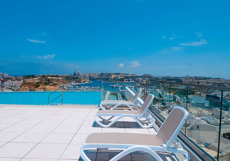 - Bar & Skybar: Drinks wahlweise im Haus oder mit Blick über Gżira.