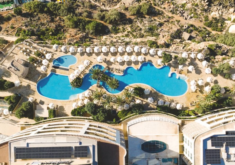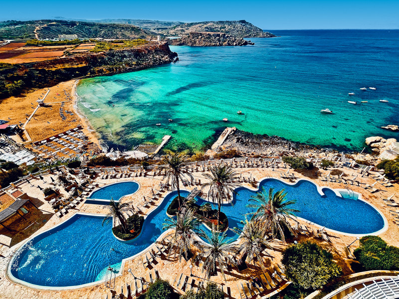 Radisson Blu Resort & Spa Malta Golden Sands verbindet die exponierte Lage über der Golden Bay mit direktem Strandzugang, zwei Außenpools und einem klaren Familienfokus. Fünf Restaurants, Bars und eine Strandbar geben Eurem Tag Struktur; Live‑Musik und ein durchdachtes Sportprogramm setzen Akzente.