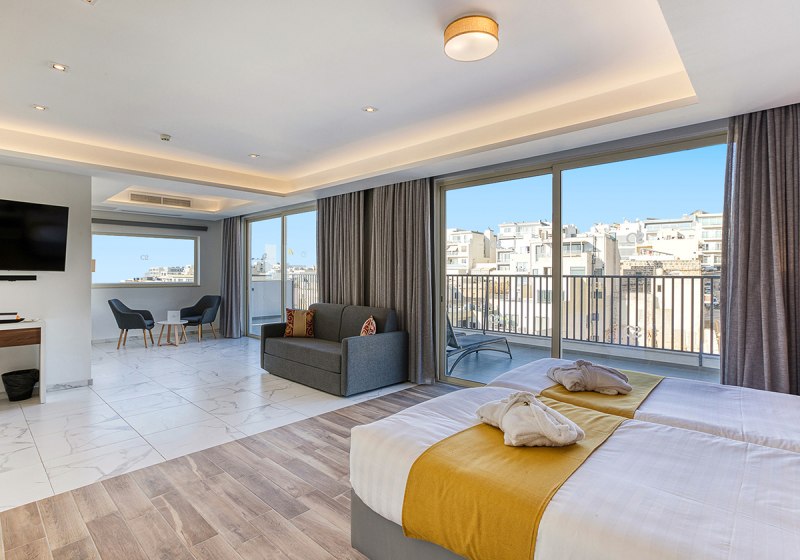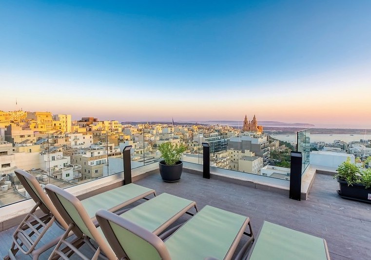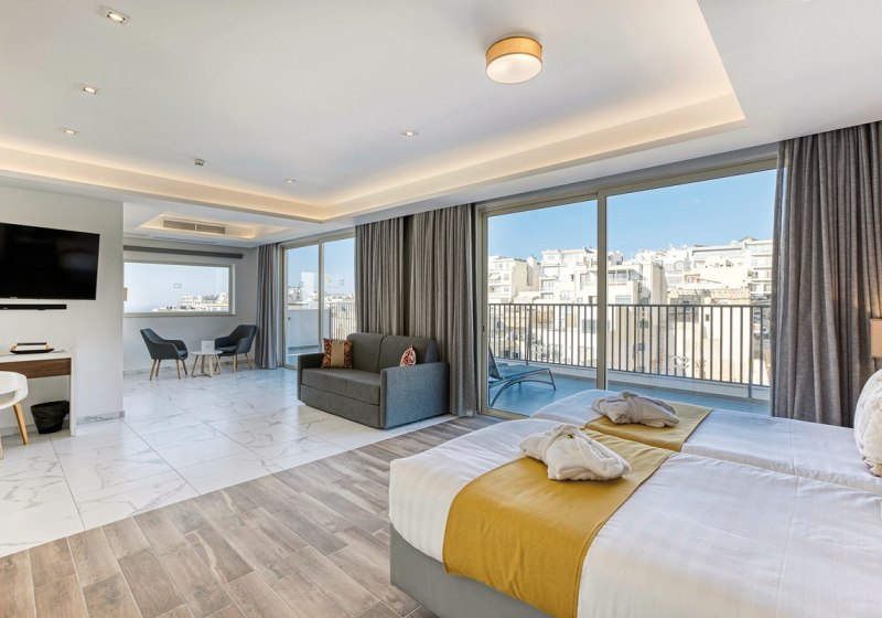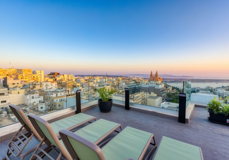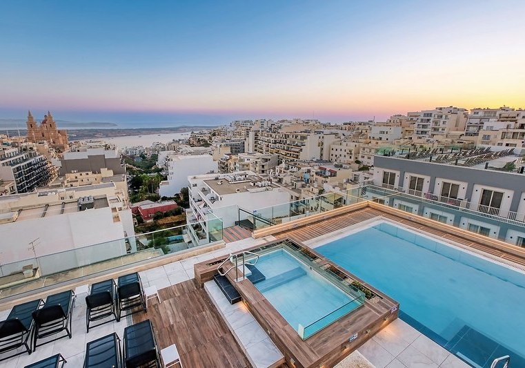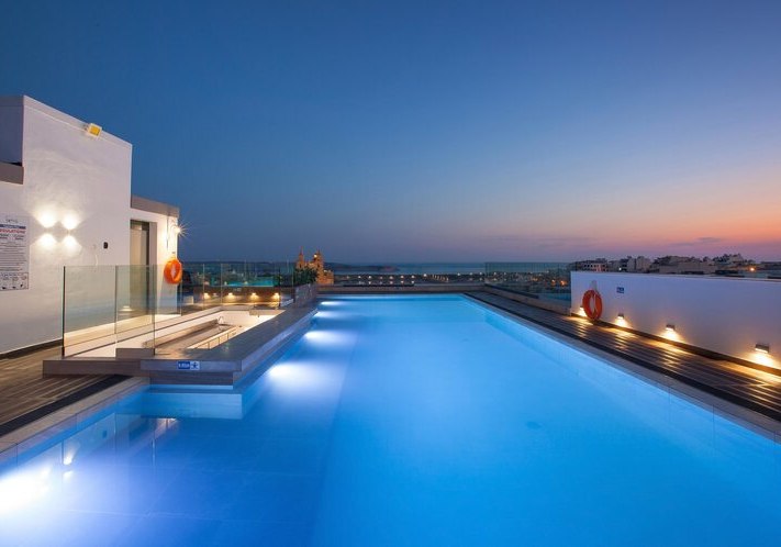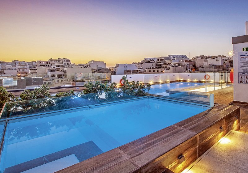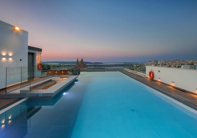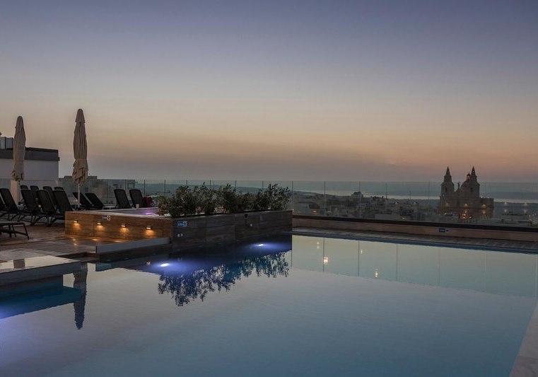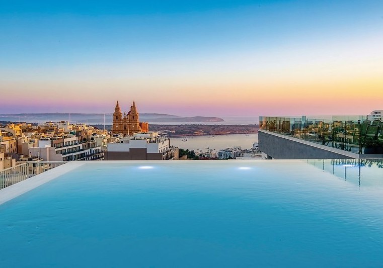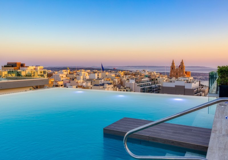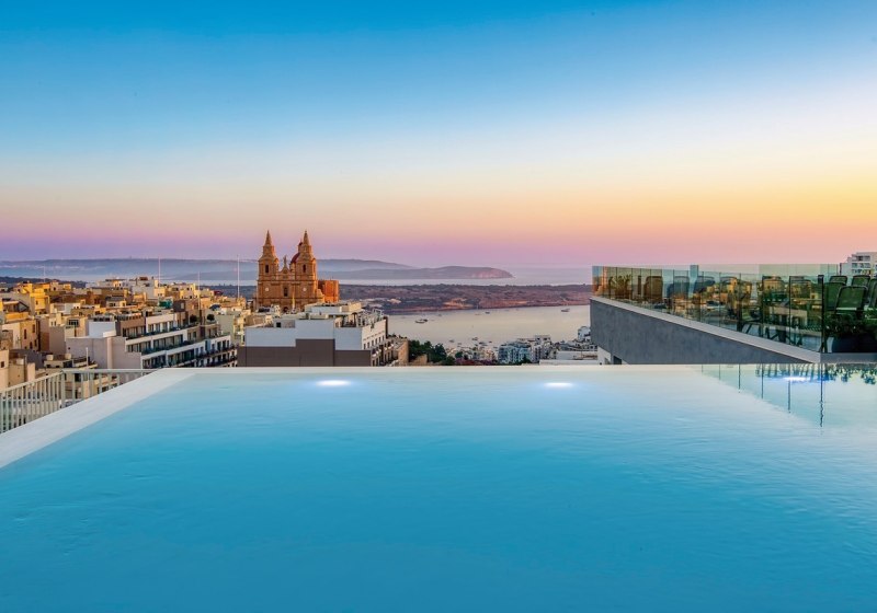 - Aussichtsdach: Rooftop-Pools bieten freie Blicke auf Gozo und Comino.