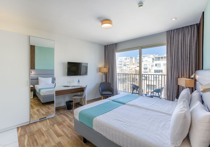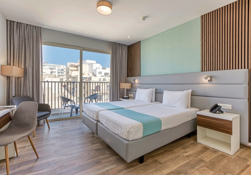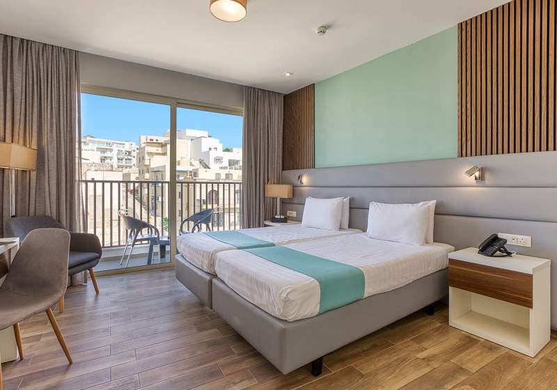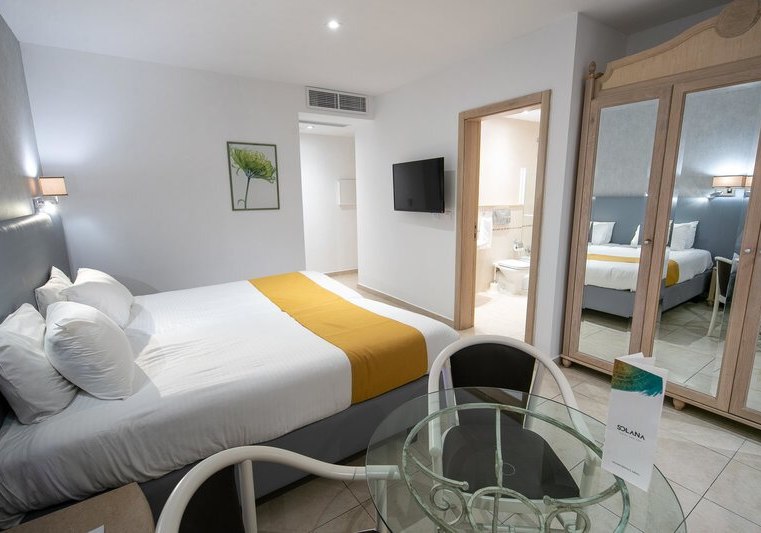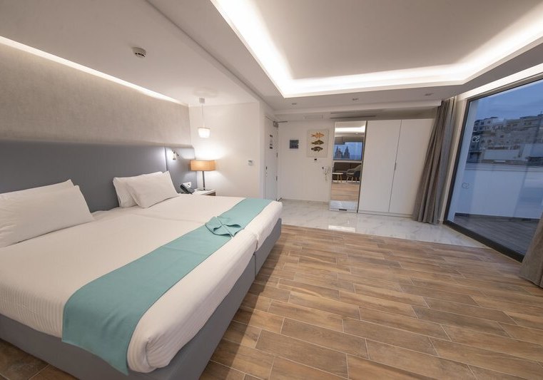 Im Solana Hotel & Spa wohnt Ihr in einem frisch renovierten Haus, das im Winter 2023/2024 modernisiert wurde und mit klaren Linien und freundlicher Weite empfängt. Auf der Dachterrasse öffnen sich zwei Pools mit Blick auf Gozo und Comino – ein stiller Rahmen für sonnige Stunden über den Dächern von Mellieha.