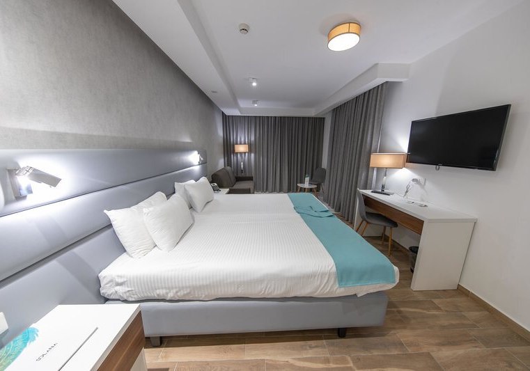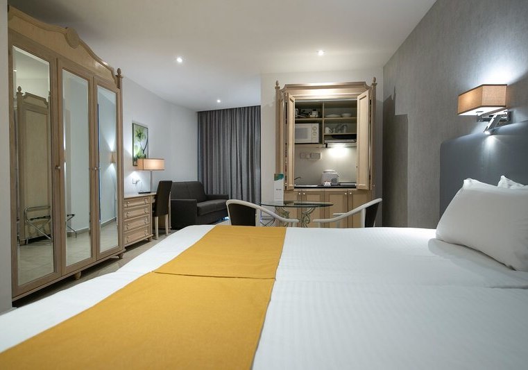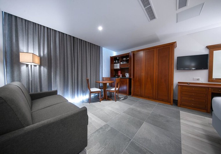 Studios bieten eine Kitchenette mit Esstisch für flexible Tage, die Suiten (ca. 50 m²) kombinieren Wohn- und Schlafraum, verfügen über eine Kaffeemaschine sowie eine möblierte Terrasse. Je nach Lage blickt Ihr auf Stadt oder Meer. So findet Ihr das passende Setup – vom unkomplizierten Doppelzimmer bis zur großzügigen Suite.