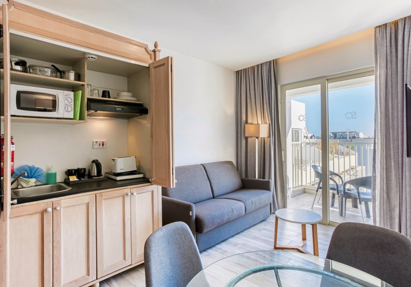 - Mehr Raum: Studios mit Kitchenette und Suiten mit Terrasse erweitern Möglichkeiten.