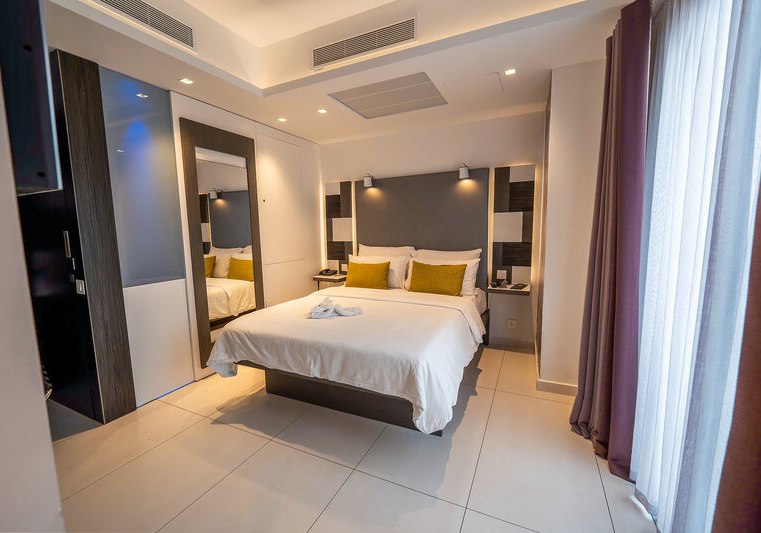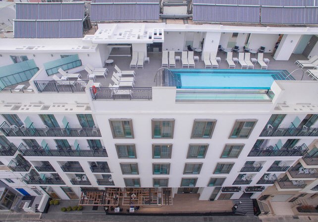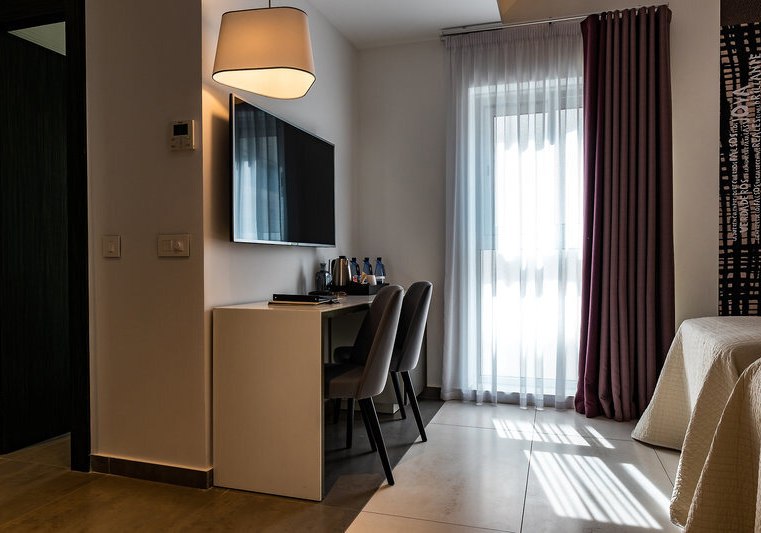 Im Valentina Hotel wohnt Ihr in einem Designhotel in St Julian’s, das klar strukturiert und angenehm modern wirkt. Die öffentlichen Bereiche sind kompakt organisiert: Lounge und Empfang schaffen kurze Wege, die Dachterrasse mit Außenpool setzt den entspannten Akzent. Städtereisende, Geschäftsreisende, Familien und Strandurlaubern bietet das Haus einen funktionalen, stilbewussten Rahmen.