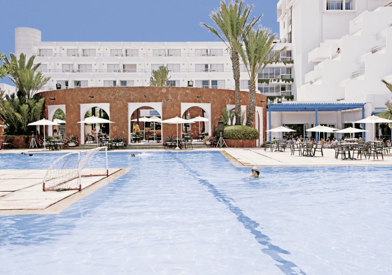 Der große Außenpool, ein separater Kinderpool und ein Aquapark mit fünf Wasserrutschen geben Eurem Tag Tempo und Abwechslung. Animation und abendliche Shows bringen Rhythmus hinein, der Miniclub (4–9 Jahre) bietet eine passende Bühne für die Kleinen. Kulinarisch wählt Ihr zwischen internationalem Buffet und drei À-la-carte-Restaurants mit italienischer, marokkanischer und Meeresfrüchte-Küche. WLAN im Hotel ist kostenfrei verfügbar.