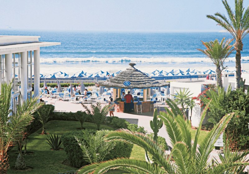 Im Dunes D'or Ocean Club wohnt Ihr unmittelbar an der Promenade von Agadir – mit dem langen Sandstrand nur ein paar Schritte entfernt. Mehrere Süßwasserpools mit Wasserrutschen bringen Tempo in den Tag, während der weitläufige Garten und die Sonnenterrassen Euch Raum für ruhige Stunden schenken. Familien finden großzügige Optionen, Paare schätzen die direkte Strandlage und das vielseitige Angebot.