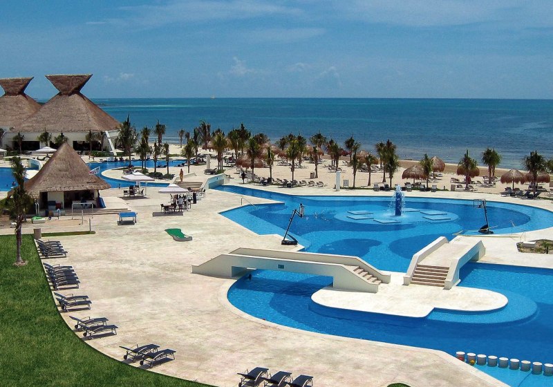 Im BlueBay Grand Esmeralda wohnt Ihr in einer weitläufigen Resortanlage an der Riviera Maya, eingebettet in eine Bucht mit Naturstrand nahe Playa del Carmen. Acht Gebäude verteilen Wege, Gärten und Wasserflächen angenehm, die große Poollandschaft strukturiert den Tag zwischen Ruhe, Bewegung und kurzen Wegen zu Bars, Restaurants und dem Theatersaal.