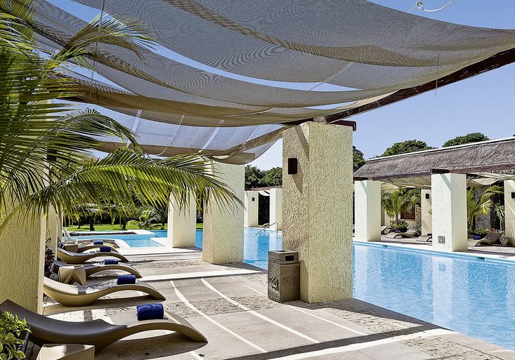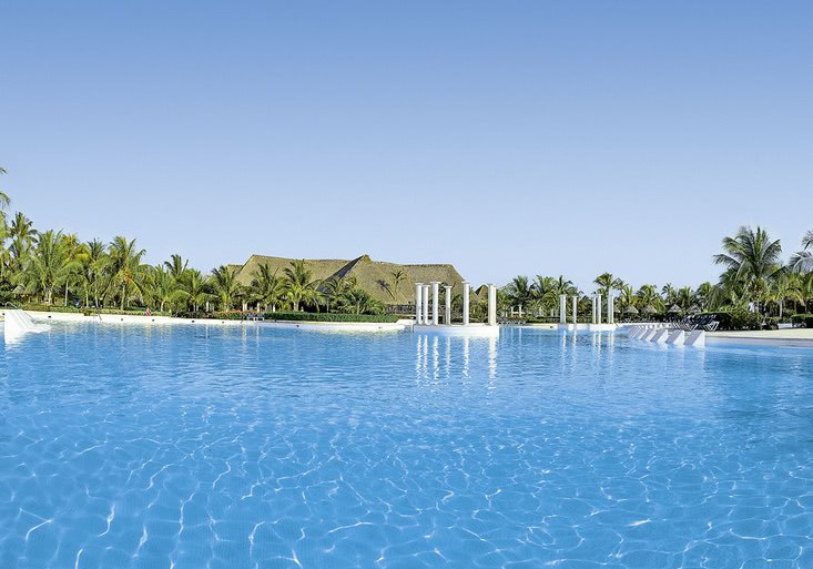 Die Anlage wirkt durch Gärten, ökologische Pfade und einen Kolonialplatz angenehm weitläufig. Zwei Teiche mit Flamingos setzen einen markanten Akzent. Im Zentrum liegen die 3.220 qm große Süßwasser-Poollandschaft und ein separater Ruhepool nur für Erwachsene, flankiert von Sonnenterrassen. WLAN nutzt Ihr in der Lobby und im gesamten Resort kostenfrei.