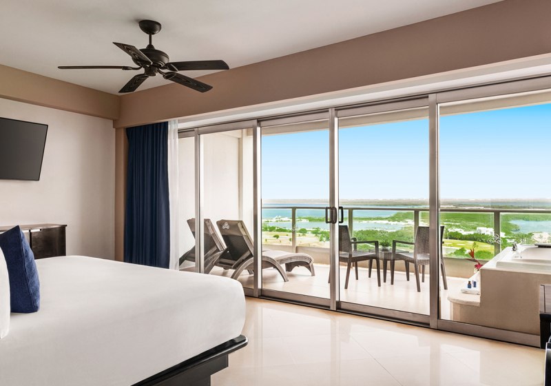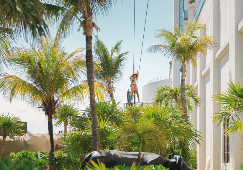 Im Seadust Cancún Family Resort wohnt Ihr in der Hotelzone von Cancún direkt am Sandstrand – ein Resort, das lebendige Familienzeit mit klar strukturierten Bereichen für Ruhe und Aktivität verbindet. Weitläufige Außenflächen mit Poollandschaften, balinesischen Betten und einer Sonnenterrasse geben Euch Raum, den Tag entlang des Meeres entspannt zu gestalten, während der Aquapark und vielseitige Clubs Kindern und Teens Tempo und Abwechslung liefern.