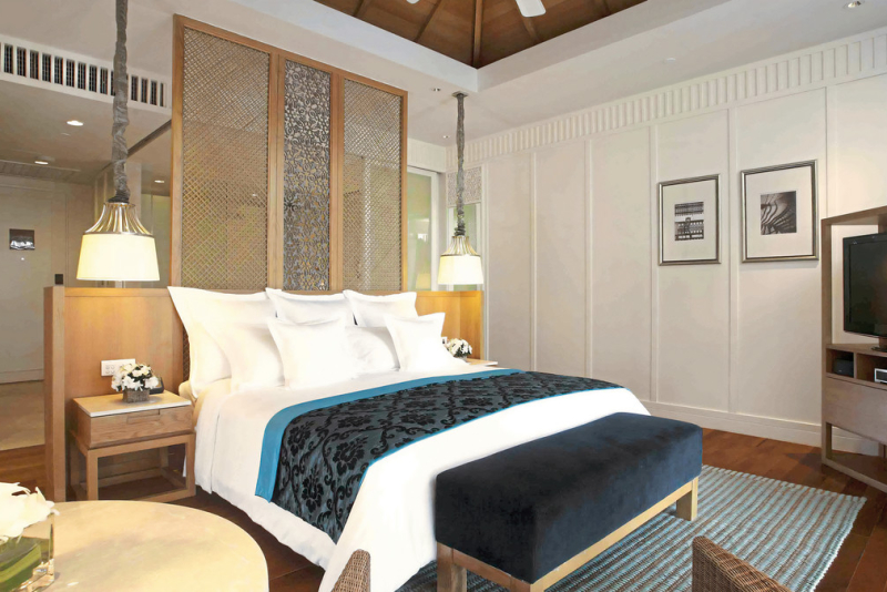 Das Resort ist in zwei Flügel, den Beach Wing und den BluPort Wing unterteilt. Der Gast hat die Wahl zwischen mehreren verschiedenen Zimmerkategorien mit Meer- oder Gartenblick. Die Premier, die Superior und die Resort Classic Zimmer sind luxuriös eingerichtet und bieten wahlweise französische Doppelbetten oder Kingsize Betten. Ihre Größe variiert zwischen 37 und 55 m² während die Suiten eine Wohnfläche von 100 m² bieten. Die Unterhaltungselektronik in den Zimmern umfasst einen DVD Player, eine iPod-Dockingstation und einen Flachbild-TV mit Kabel- und Satellitenkanälen. WLAN ist in sämtlichen Bereichen des Intercontinental Hua Hin kostenlos nutzbar. Zu den weiteren Annehmlichkeiten in den Zimmern gehören ein Wasserkocher für die Kaffee- und Teezubereitung, ein Haartrockner und eine Minibar. Als kleines Extra liegen in jedem Bad kostenlose Pflegeprodukte, Hausschuhe und Bademäntel bereit.Gastronomie / Restaurants