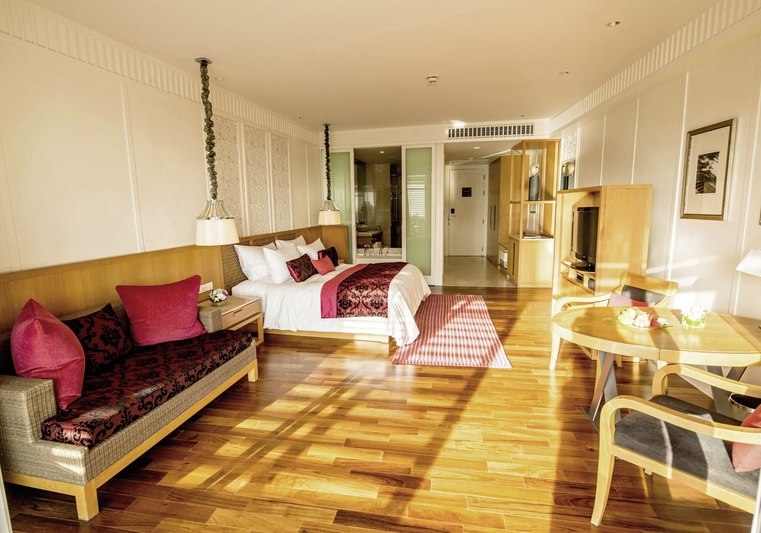 Im Intercontinental Hua Hin Resort wohnt Ihr direkt am Sandstrand von Hua Hin – mit dem Meer vor Augen und der Stadt in Reichweite. Die Architektur verteilt sich auf ein Hauptgebäude und zwei Nebengebäude, die Wege bleiben kurz. Das Ambiente wirkt entspannt, serviceorientiert und klar strukturiert. Highlight: Direkte Strandlage mit urbanem Anschluss, ideal für erholsame Tage und spontane Ausflüge.