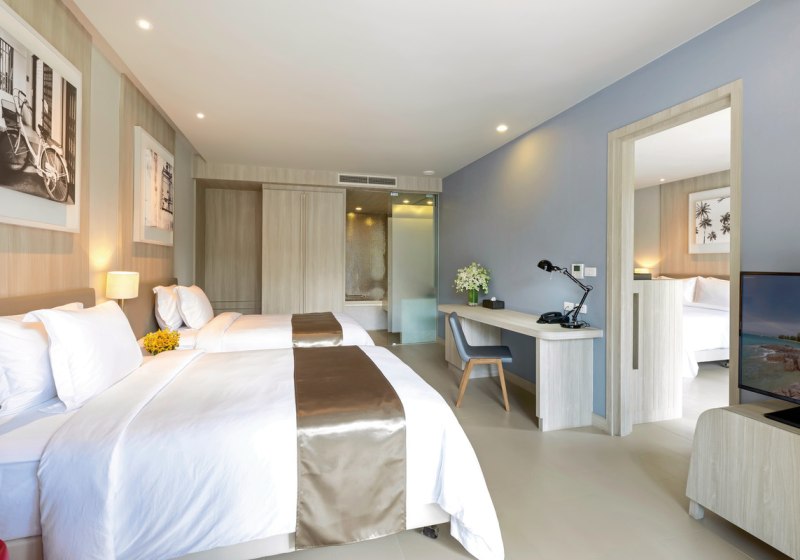 Im X10 Khaolak Resort wohnt Ihr zwischen Family Wing und Beach Wing direkt am Lah Own Beach. Fünf Außenpools, zwei Kinderbecken mit Wasserrutsche und ein kleiner Wasserpark strukturieren den Tag angenehm, vom Planschen bis zur stilleren Bahnlänge. Die Anlage wirkt großzügig, dabei klar gegliedert – ideal für Paare und Familien, die Struktur schätzen.