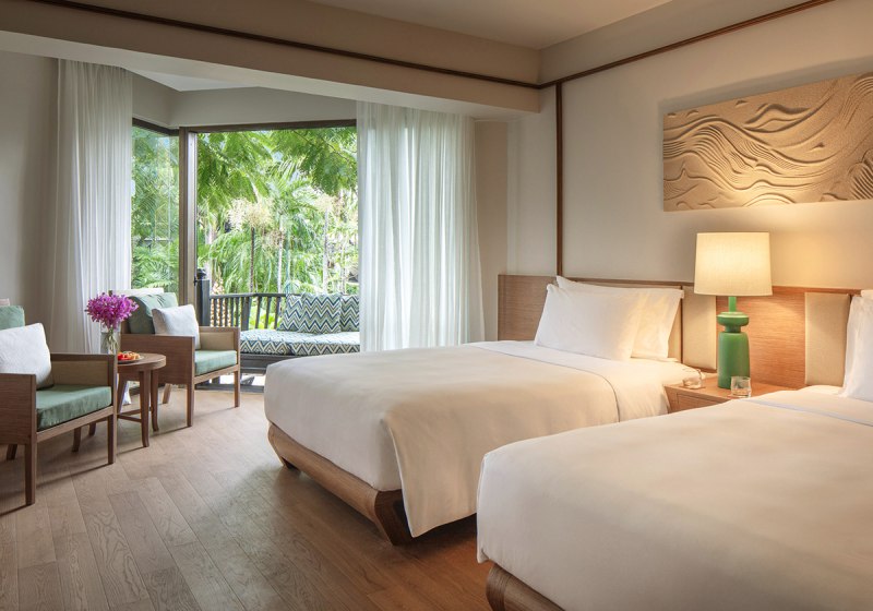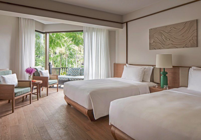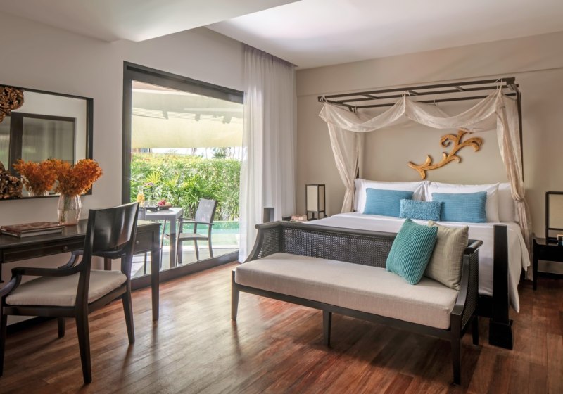 Die 108 Zimmer sind klimatisiert und auf Wunsch familiengeeignet. Viele Ausstattungen unterstützen komfortables Wohnen: Balkon oder Terrasse, Sitzecke, Schreibtisch, Safe, Minibar, Kaffee-/Teezubereiter und WiFi. Einige Kategorien bieten Meerblick, Gartenblick oder einen privaten Pool. Highlight: Auswahl bis hin zum Zimmer mit Privatpool.