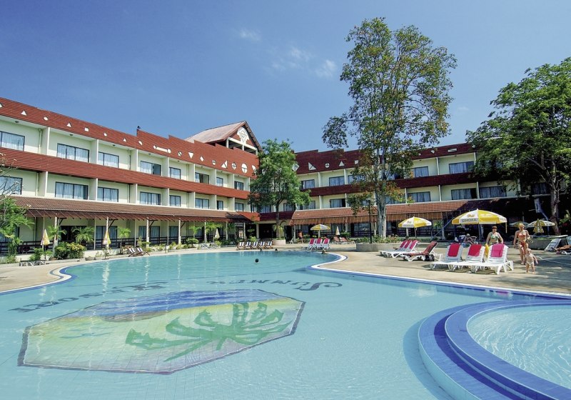 Im Pattaya Garden Resort erlebt Ihr ein klassisches Resort in Pattaya mit ruhigem, grünen Charakter. Die tropische Gartenanlage bildet den Rahmen für zwei Außenpools und weitläufige Sonnenterrassen. In zwei Gebäuden verteilen sich 420 Zimmer, dazu kommen Bungalows in separaten Häusern. Das Zusammenspiel aus Garten, Wasserflächen und offenen Aufenthaltsbereichen sorgt für ein entspanntes Tempo, das Ihr sofort im Alltag spürt.