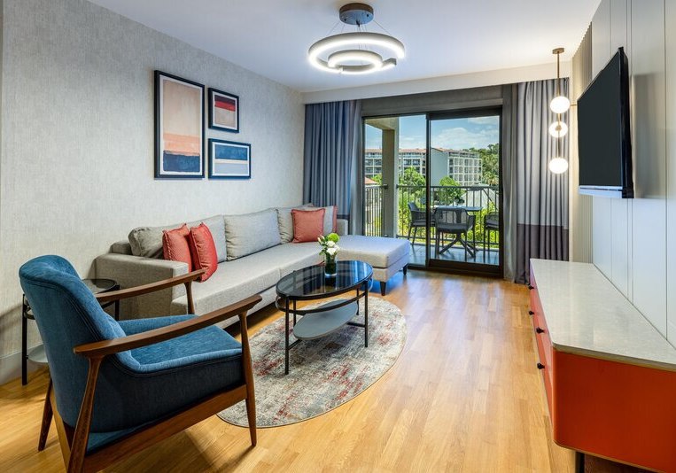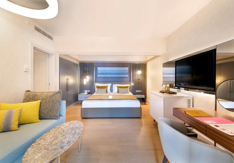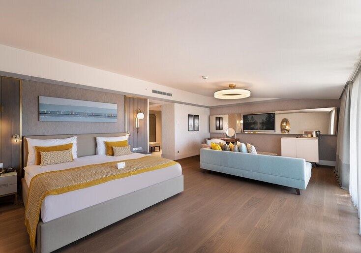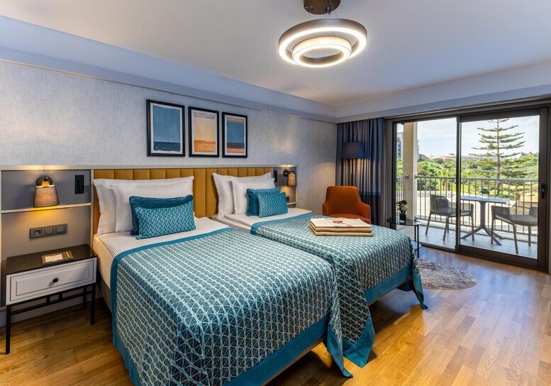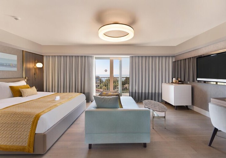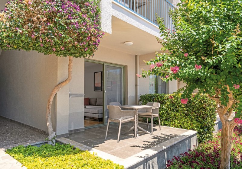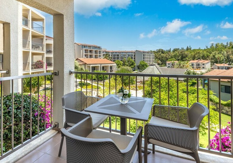 Für Familien eröffnen ausgewählte Kategorien mit Schlafsofa, Wohnzimmer und Kinderbett flexible Kombinationsmöglichkeiten. Nichtraucherzimmer sind Standard, insgesamt stehen 330 Einheiten zur Verfügung. Der Blick führt auf Gartenbereiche oder Richtung Meer, begleitet von praktischen Außenmöbeln auf Balkon oder Terrasse. Direktwahltelefon und Zimmerservice-Option fügen Komfort hinzu, ohne die Räume zu überfrachten.