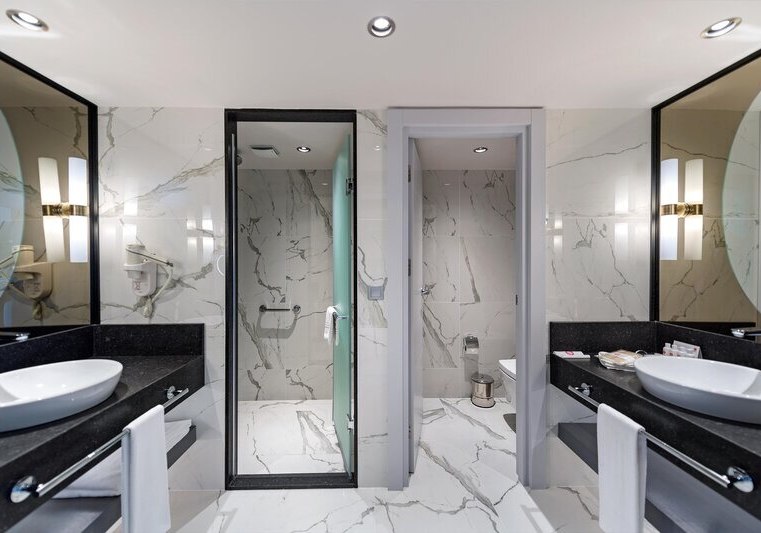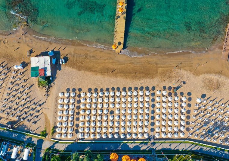 Im Arum Barut Collection erlebt Ihr ein Strandhotel, das Struktur und Weite geschickt verbindet: ein sechsstöckiges Haupthaus mit Lift, flankiert von niedrigeren Nebengebäuden, eingebettet in eine gepflegte Gartenanlage. Der Sandstrand liegt nur durch die Promenade getrennt vor Euch; ein hoteleigener Badesteg führt direkt ins Wasser. Mehrere Süßwasserpools, ein separates Kinderbecken und Wasserrutschen gestalten entspannte wie lebhafte Stunden – je nachdem, wonach Euch im Urlaub ist.