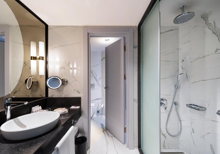 In den Zimmern findet Ihr durchdachte Details: Dusche/WC, Föhn, Bademantel und Slipper, Sat-TV, Safe und inklusive WLAN. Eine Minibar, Wasserkocher und Nespresso-Maschine stehen bereit, die zentral gesteuerte Klimaanlage läuft stundenweise. Laminatboden, Sitzecke und ein Balkon mit Tisch und Stühlen schaffen klare Strukturen für entspannte Pausen.