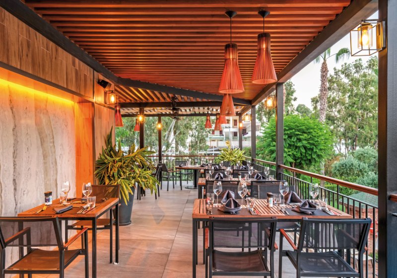 • Terrassenblick: Hauptrestaurant mit Terrasse verbindet Aussicht und entspannte Essenszeiten.