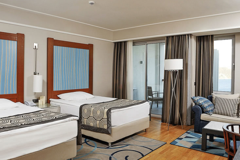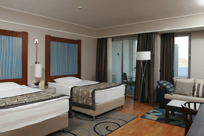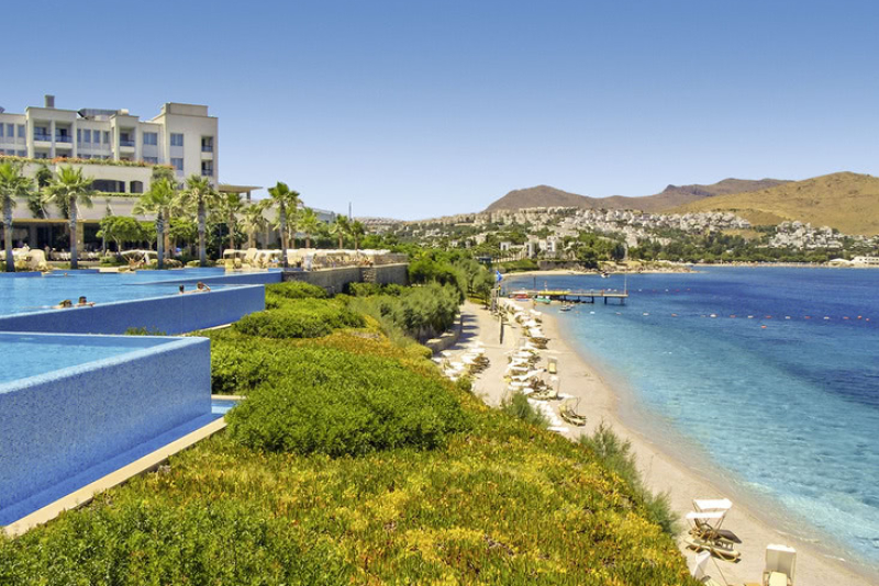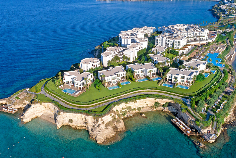 Das Xanadu Island befindet sich direkt am Strand auf einer eigenen Halbinsel, was für eine einzigartige und exklusive Lage sorgt. Die Entfernung zum Flughafen Bodrum beträgt 60 km, während das Stadtzentrum und Einkaufsmöglichkeiten nur 7 km entfernt sind. Für Gäste, die das lokale Leben erkunden möchten, ist die Stadt Bodrum 25 km entfernt.