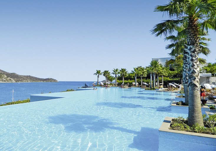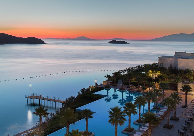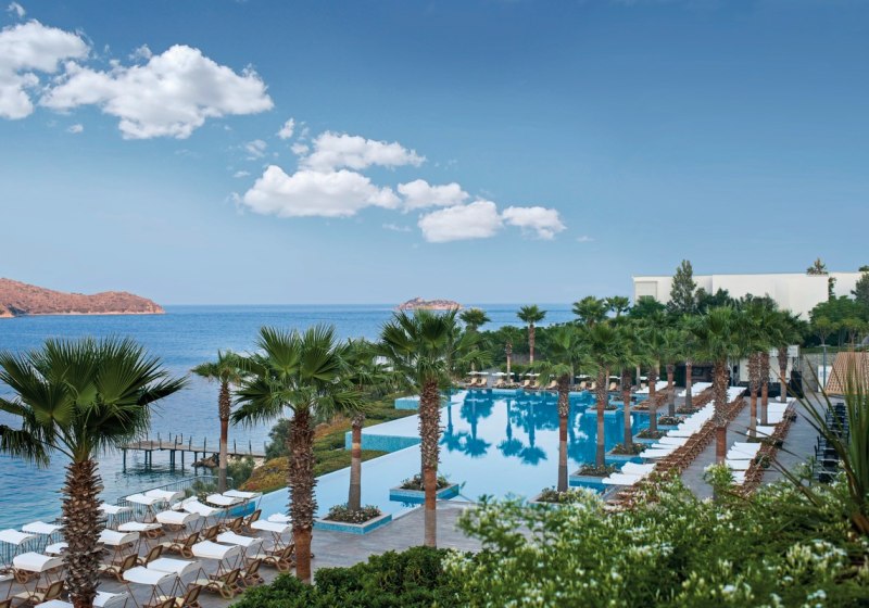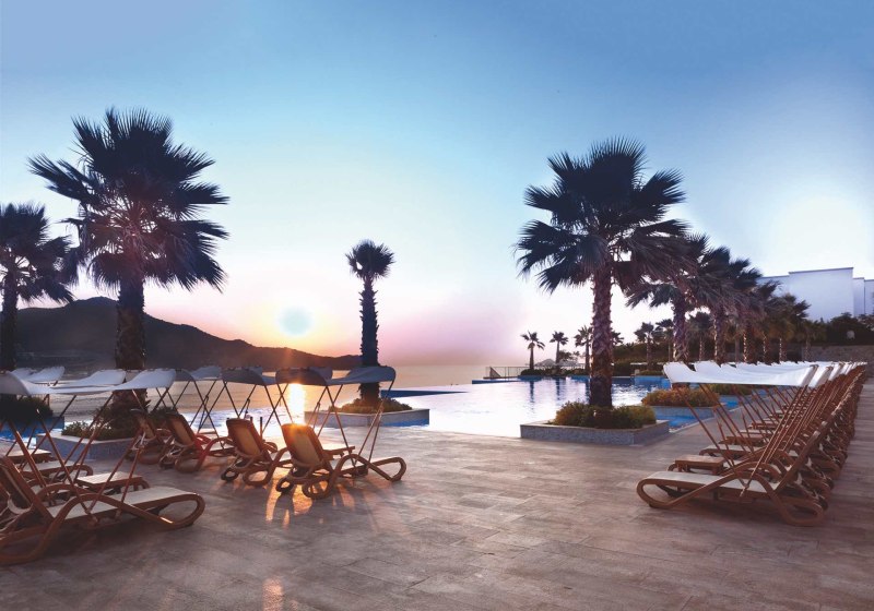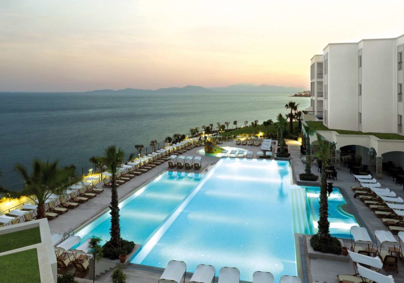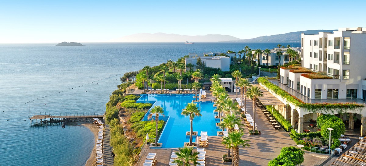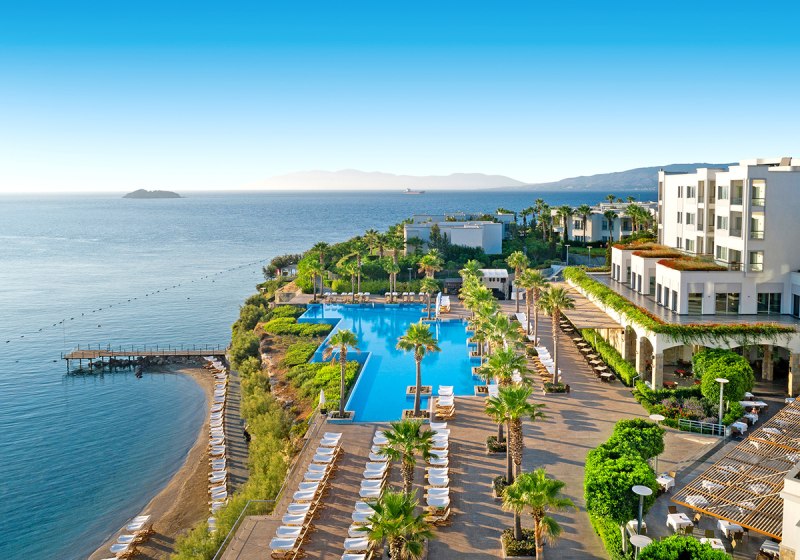 Xanadu Island empfängt Euch auf einer 55.000 m² großen Anlage in Akyarlar bei Turgutreis, direkt am privaten Kiesstrand mit Badestegen und zwei Badeplattformen. Ihr lebt in Suiten, viele mit Meerblick, entspannt an zwei Süßwasser-Außenpools, einem separaten Relaxpool und dem Hallenbad. WLAN steht Euch im gesamten Hotel zur Verfügung, ebenso Liegen und Badetücher am Pool und Strand. Highlight: Direkter Strandzugang mit Stegen und Plattformen sorgt für kurze Wege ans Wasser.