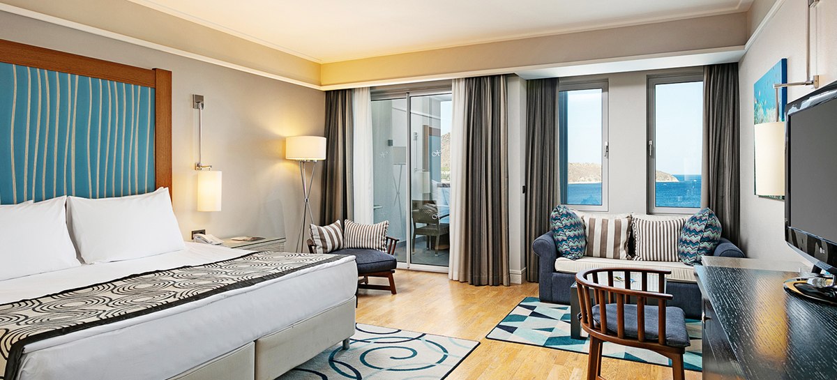 • Meerblick: Viele Suiten öffnen den Blick auf die Ägäis.