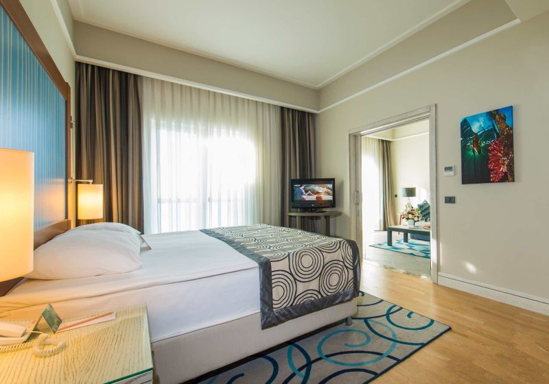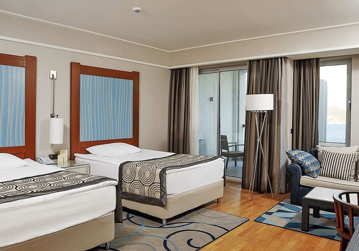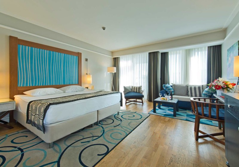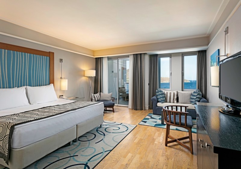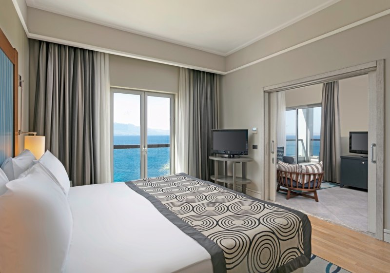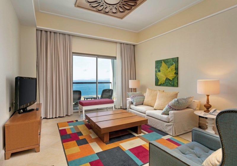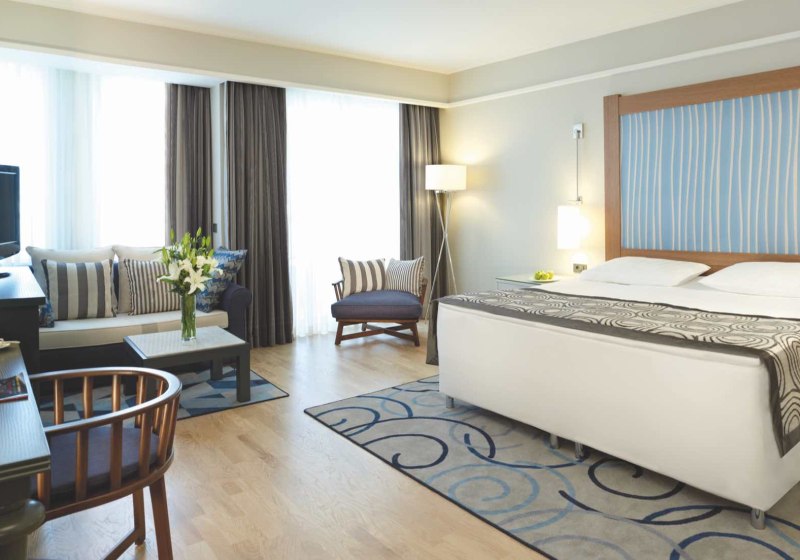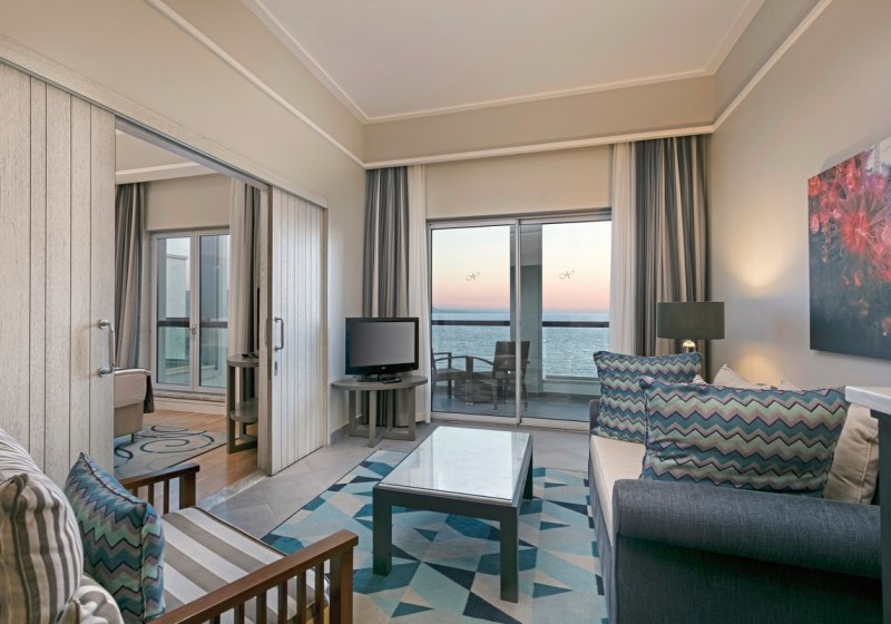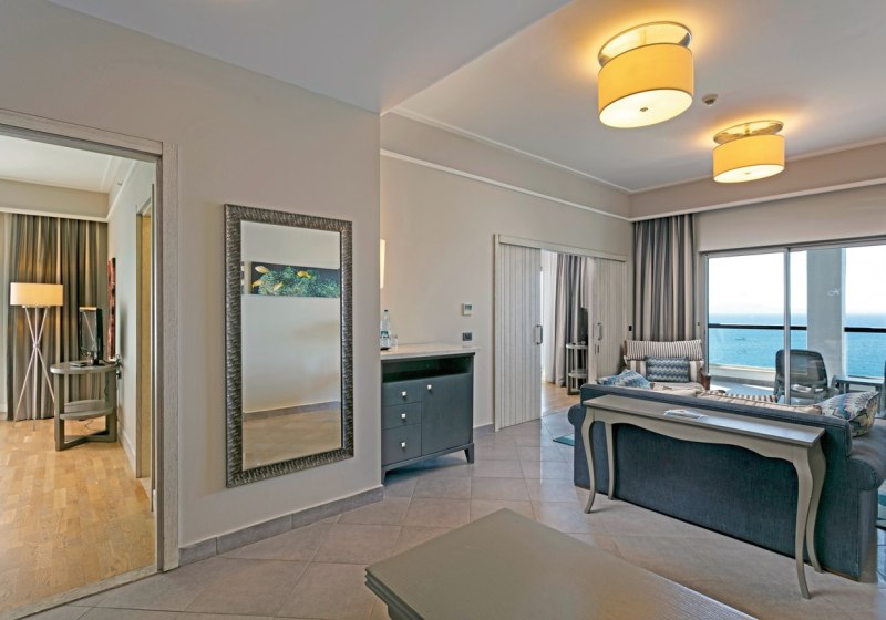 Ihr wohnt in Suiten mit 51 bis 110 m², viele mit Meerblick. Zur Grundausstattung zählen zentrale Klimaanlage, Safe, Minibar sowie Kaffee- und Tee-Setup mit Wasserkocher. Ein LCD-Sat-TV mit Musikkanal begleitet Euch am Abend. Das Bad bietet Regendusche, Föhn, Bademantel und Slipper. Ein Kissenmenü und die Sitzecke mit Schlafsofa erhöhen den Komfort. Highlight: Weitläufige Suiten mit Balkon schaffen spürbaren Wohnraum.