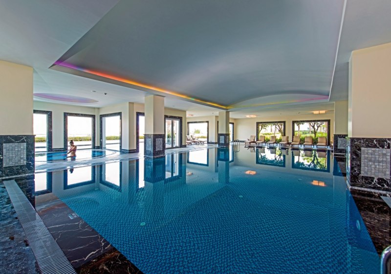 Die Infrastruktur ist umfassend: Empfangshalle mit Rezeption, WLAN im gesamten Hotel, kleine Geschäfte, Friseur und verschiedene Bars verteilen sich über die 55.000 m². Zwei Süßwasser-Außenpools, ein Relaxpool, Kinderbecken mit kleiner Rutsche und das Hallenbad strukturieren den Badetag. Auf den Sonnenterrassen liegen Badetücher und Liegen für Euch bereit, am Strand ebenso. Highlight: Großzügige Poollandschaft plus Hallenbad decken jede Wetterlage ab.