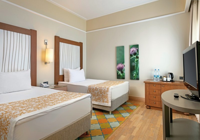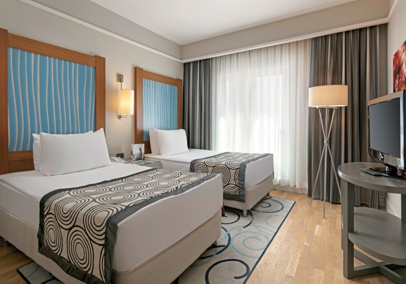 Für aktive Stunden nutzt Ihr Fitnesscenter, Tartan-Tennisplatz, Multifunktionsplatz, Minifußball und Basketball. Darts, Tischtennis, Billard und Bowling runden das Angebot ab. Ein Amphitheater, Game-Hall und Diskothek adressieren den Abend. Praktisch: Babybetten und Kinderwagen auf Anfrage sowie rollstuhlgerechte Zimmer stehen bereit. Direkt vor dem Hotel hält der Minibus. Highlight: Durchdachte Infrastruktur von Sport bis Abendrevue spart Wege im Urlaub.