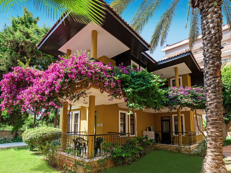 - Gartenblick: Villen und Bungalows liegen ruhig im grünen Gartenbereich.