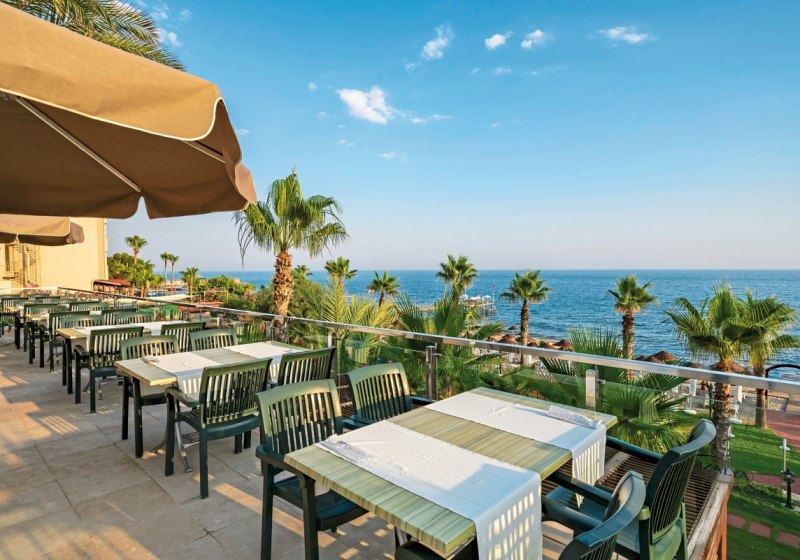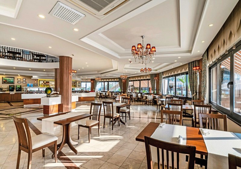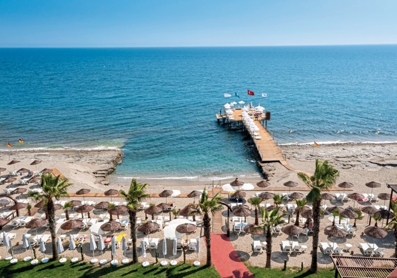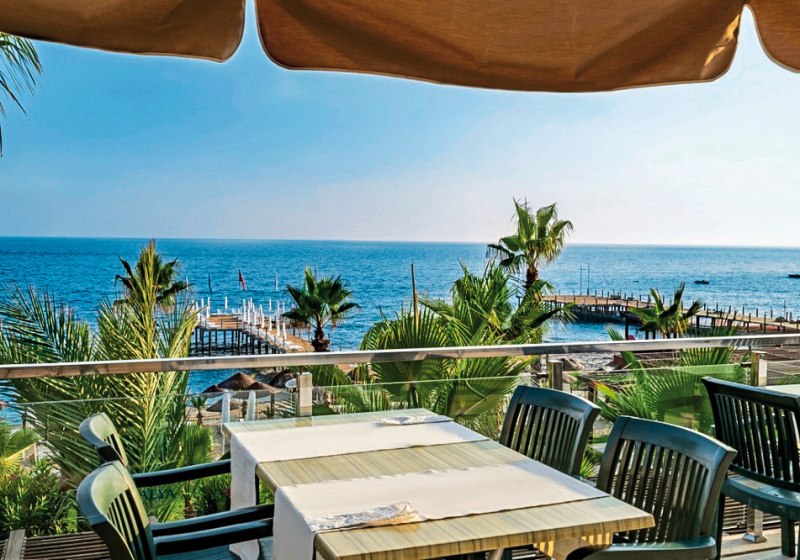 Club Dizalya kombiniert direkte Strandlage bei Konakli mit einer großen Gartenanlage, zwei Pools, Rutschen und klar strukturiertem Programm. Familien profitieren von Kinderbecken, Spielplatz und Miniclub; Aktive von Fitnessraum, Tennis und Strandangeboten. WLAN ist in der gesamten Anlage kostenfrei.