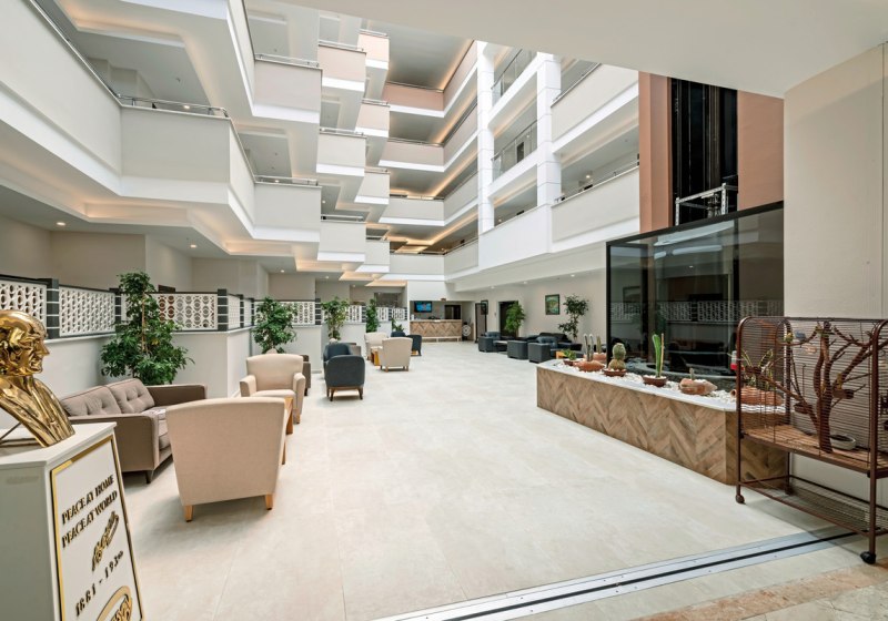- Alles vor Ort: Rezeption, Lobby, Shops und Konferenzraum bündeln die Wege.