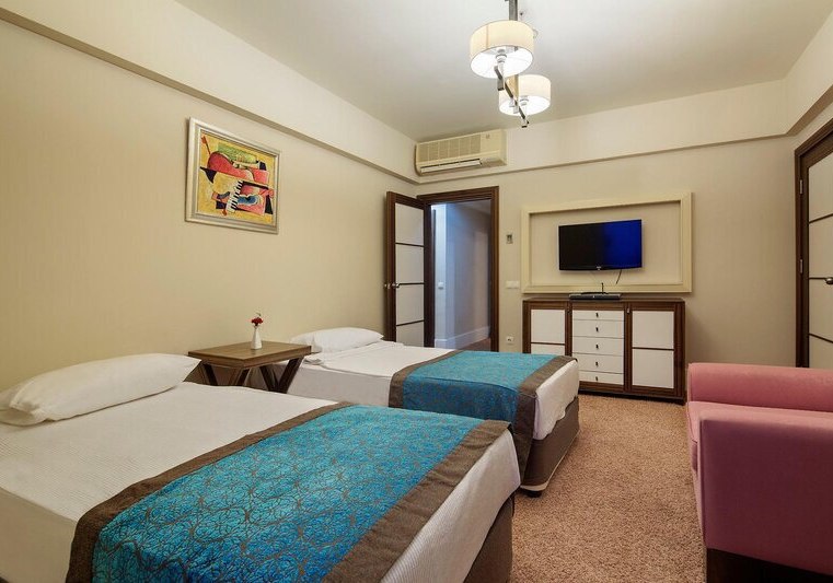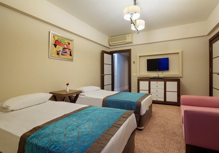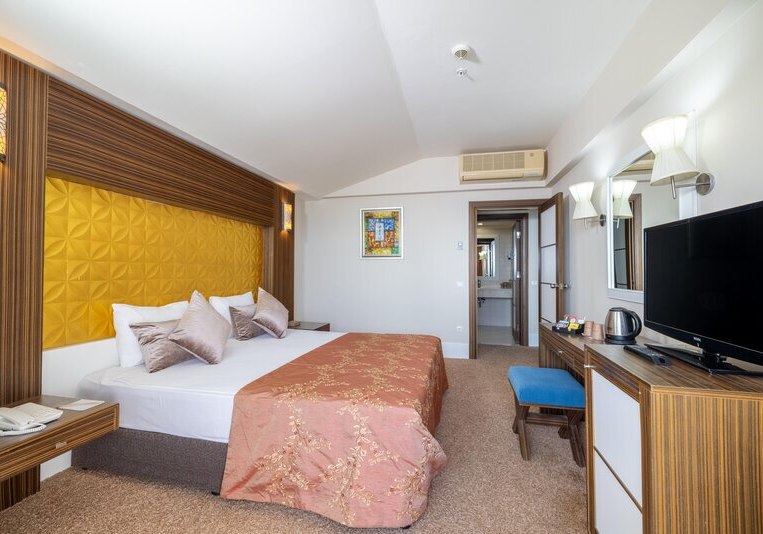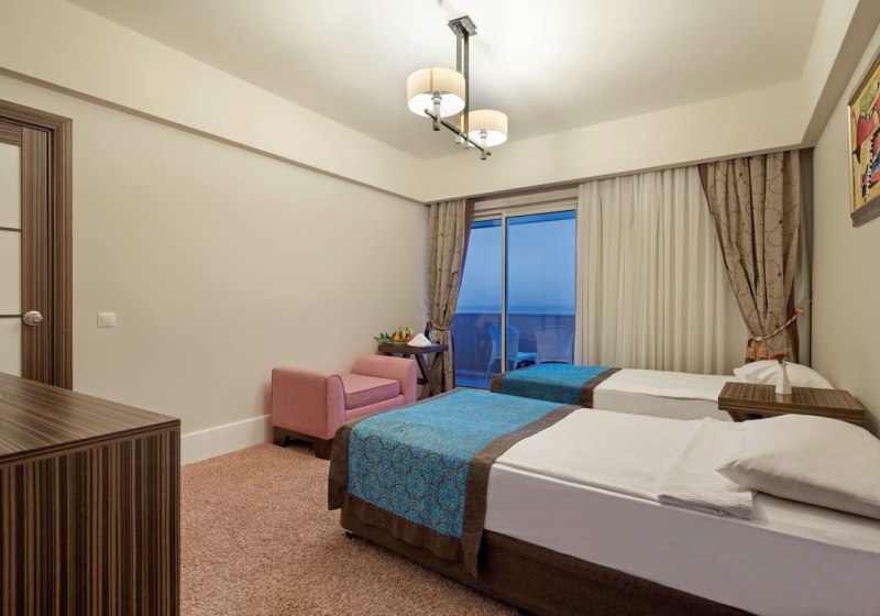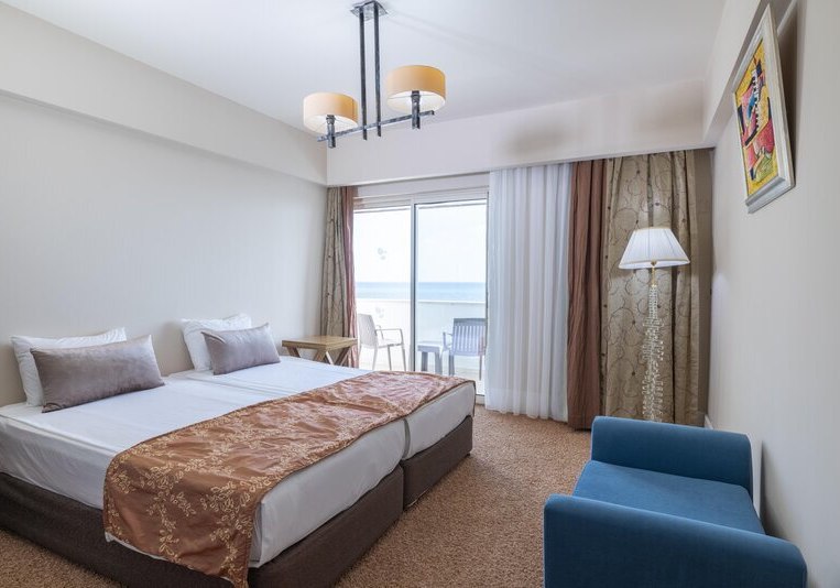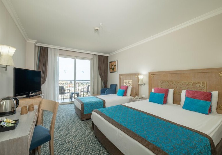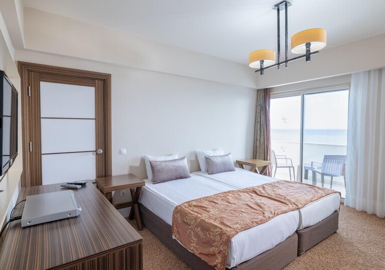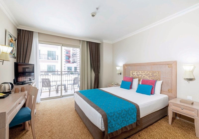 Ihr wohnt mit funktionalen Details: Dusche, Föhn, Sat‑TV mit Musiksender, Safe und Mini‑Kühlschrank. Zentral gesteuerte Klimaanlage (zeitweise), Teppichboden, Balkon und inklusive WLAN runden den Komfort ab. Seitlicher Meerblick ist in ausgewählten Einheiten verfügbar. Highlight: Balkon in allen Zimmern für kurze Auszeiten.