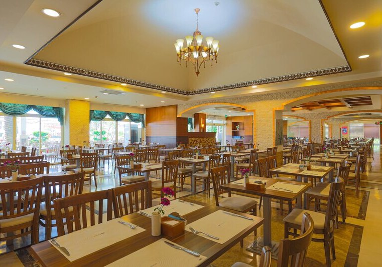 Vom Hauptrestaurant mit Terrasse bis zu À‑la‑carte‑Adressen: Ihr esst vielfältig und in ruhigen Abläufen. Die Bars verteilen sich klug über die Anlage, eine davon ist rund um die Uhr geöffnet. Dazu kommt das Café Turca mit charakteristischen Heißgetränken. Highlight: 24‑Stunden‑Bar für flexible Genussmomente.