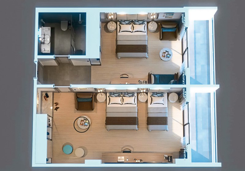 Bei den Kategorien wählt Ihr zwischen Doppelzimmern, größeren Doppelzimmern und Familienzimmern Typ A mit zusätzlichem Schlafraum und Verbindungstür. So passt Ihr das Raumgefühl an Eure Mitreisenden an – vom kompakten Rückzugsort bis zur klar getrennten Familienlösung. Highlight: Familienzimmer mit Verbindungstür – zwei Schlafräume, ein strukturierter Abend.