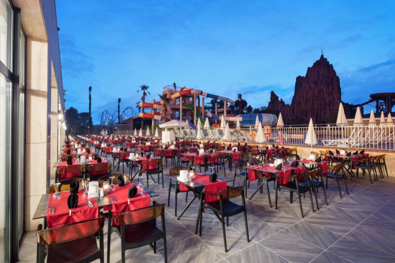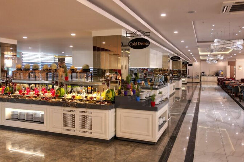 In den drei Restaurants des Aydinbey Queen's Palace & Spa werden die kulinarischen Wünsche der Urlaubsgäste erfüllt. Das stilvolle Hauptrestaurant bietet vielfältige türkische und internationale Spezialitäten Alls Buffett, sowie ein Kinderbuffett für die kleinen Gäste an. In den beiden prächtigen à-la-carte-Restaurants kann ebenso herrlich abwechslungsreich geschlemmt werden. Beinahe rund um die Uhr - vom Frühstück bis zur Mitternachtssuppe - können die Gäste vielfältige Köstlichkeiten genießen. Fünf Bars, davon eine Poolbar und eine Snackbar direkt am Strand, versorgen die Gäste mit erfrischenden Drinks, feinen Snacks und spritzigen Cocktails sowie Kaffee, Kuchen.Sport / Unterhaltung / Pool