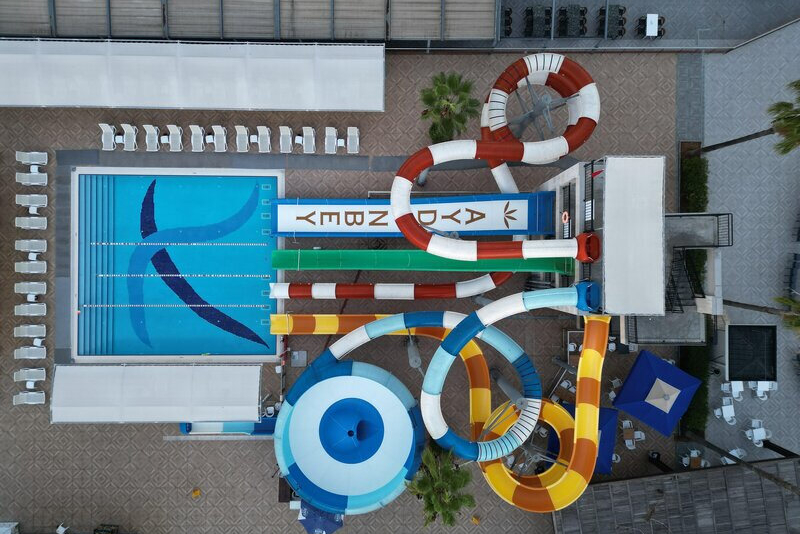 Zwei Pools und ein Kinderpool in der traumhaften Gartenanlage, sowie fünf große Wasserrutschen und ein separater Indoor-Pool, machen das Badevergnügen im Aydinbey Queen's Palace & Spa perfekt. Liegen und Sonnenschirme als auch Badetücher stehen für die Hotelgäste kostenlos bereit.