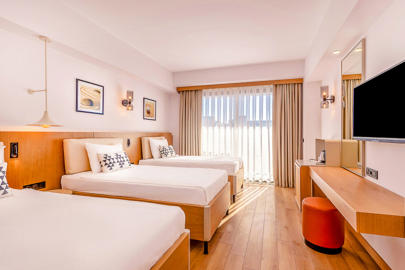 Das Belek Beach Resort verfügt über sechs Gebäude mit insgesamt 475 Zimmern. Die Standard-Zimmer haben eine Größe von rund 28 Quadratmetern. Die Economy-Zimmer sind etwas kleiner. Die Familienzimmer sind rund 40 Quadratmeter groß. Sie verfügen über zwei Schlafzimmer mit Verbindungstür. Des Weiteren gibt es für körperlich eingeschränkte Gäste fünf barrierefreie Unterkünfte. Zur Ausstattung aller Zimmer gehört unter anderem ein Balkon, eine individuell einstellbare Klimaanlage, ein LCD-Fernseher, Satellitenempfang sowie kostenfreies W-LAN, ein Safe, eine Minibar sowie der Zimmerservice.Gastronomie / Restaurants