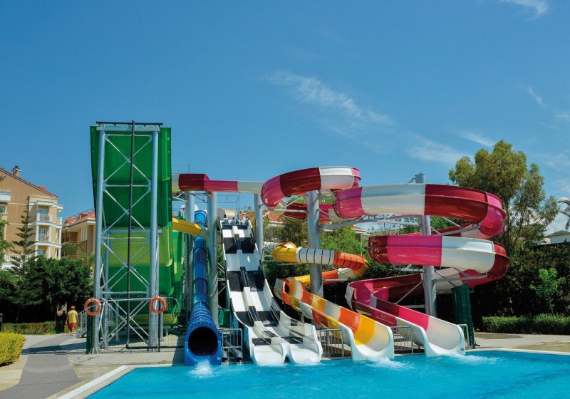 - Pools & Rutschen: Aussenpools und eigener Aquapark im Gelände.